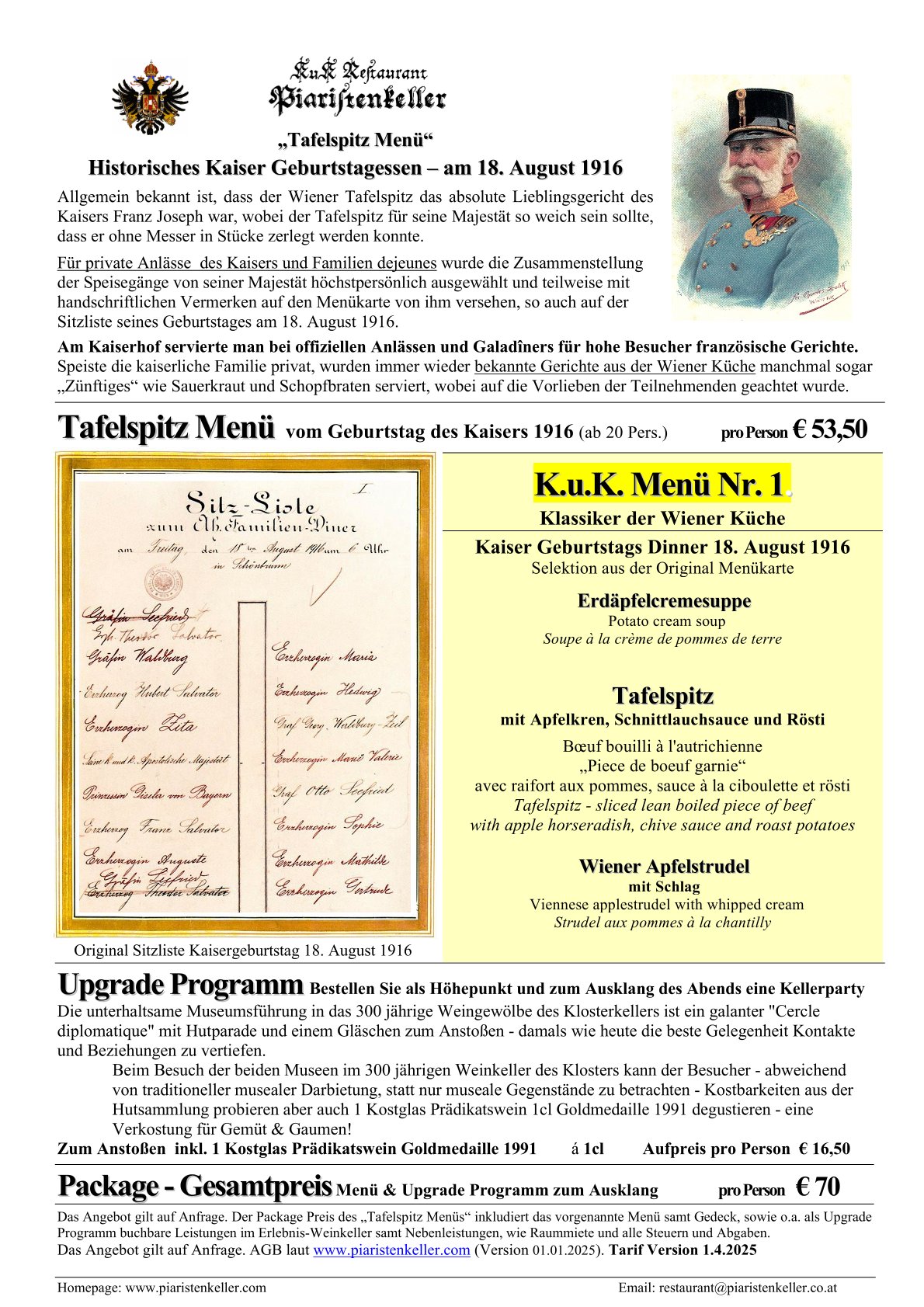 Menü Wiener K.u.K. Küche